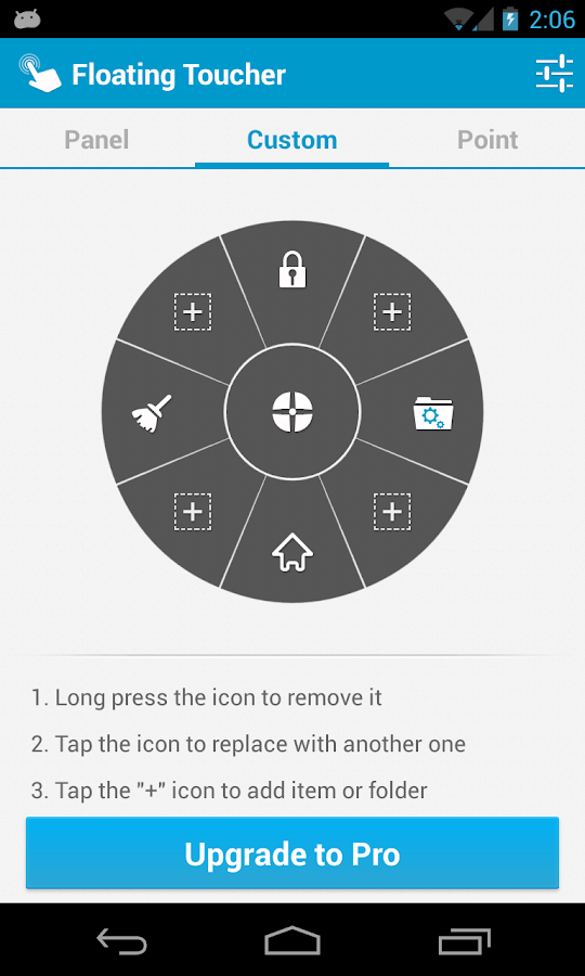 : Floating Toucher designed. Floating Toucher button floats screen over other apps, .Floating Toucher contains most commonly used switches system installed apps, control app easily without exiting current app.